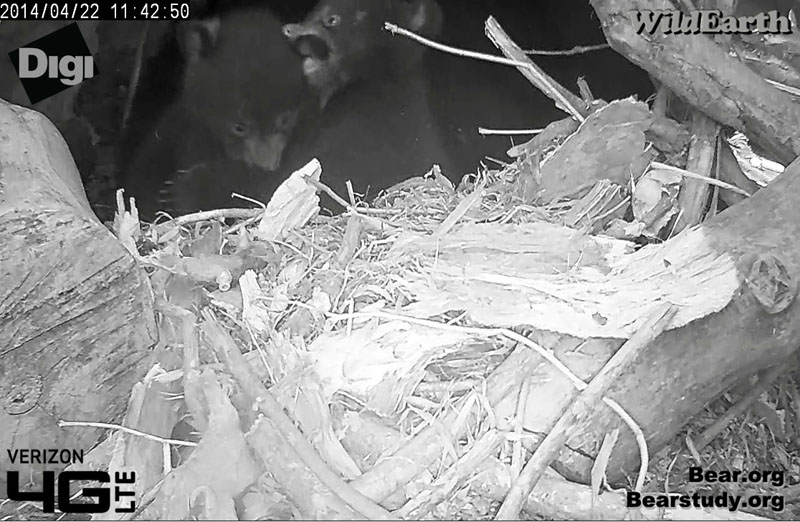 Die SH Karte hatte Standbilder und Videos von den Aktivitäten der Familie am 6. Und 7. April aufgenommen, bevor die Pfadkamera entfernt wurde. Wir waren überrascht zu sehen, dass alle 3 Bären gegen 10:30 Uhr am 6. April aus der Höhle gekommen waren und sich fast eine Stunde draußen getummelt hatten bevor sie in die Höhle zurückgingen. Teile des VIDEO und ein kurzes VIDEO, wie sie spielen.